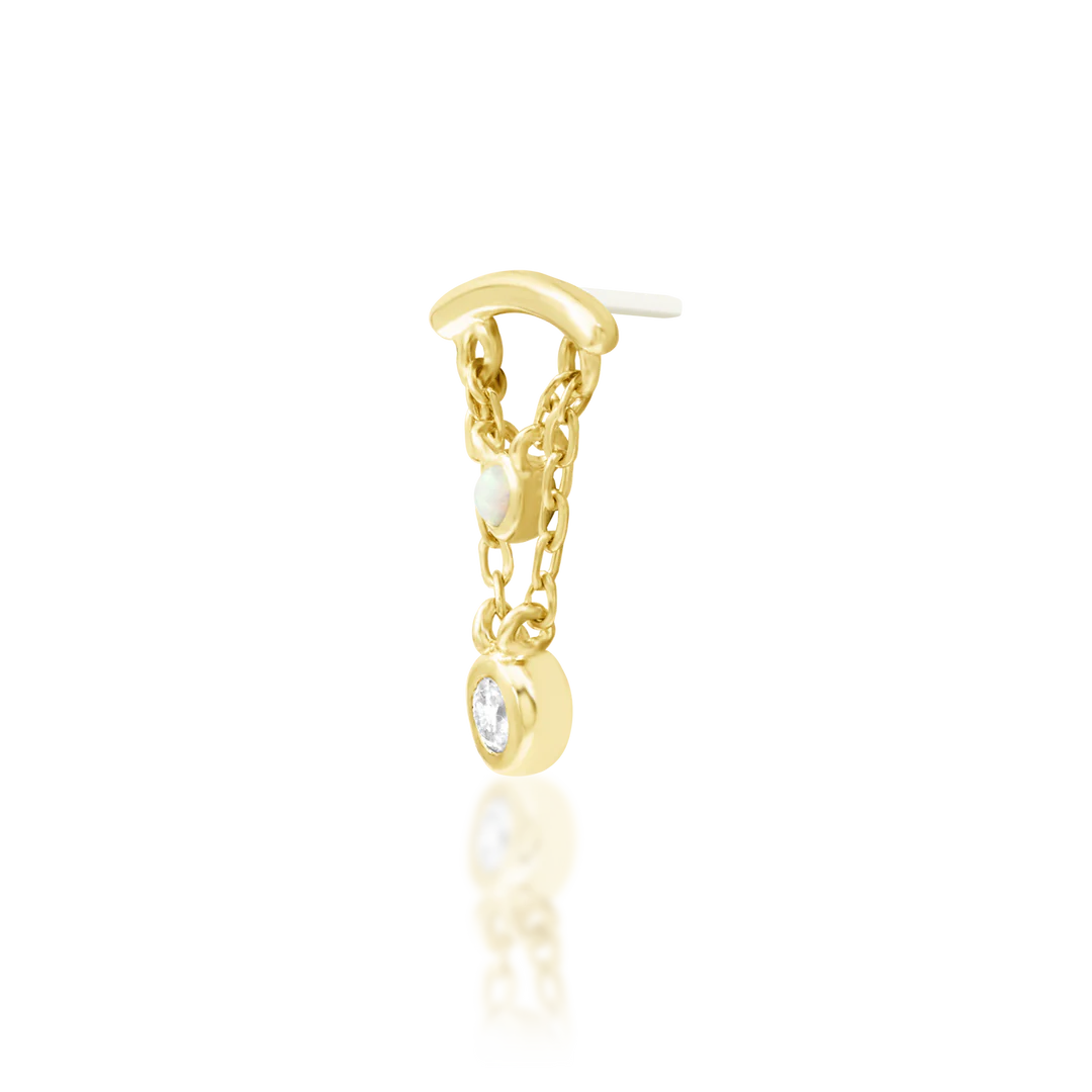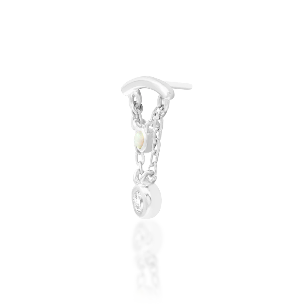 This threadless end features a dangling opal of 1.5mm and a white CZ of 0.8mm.