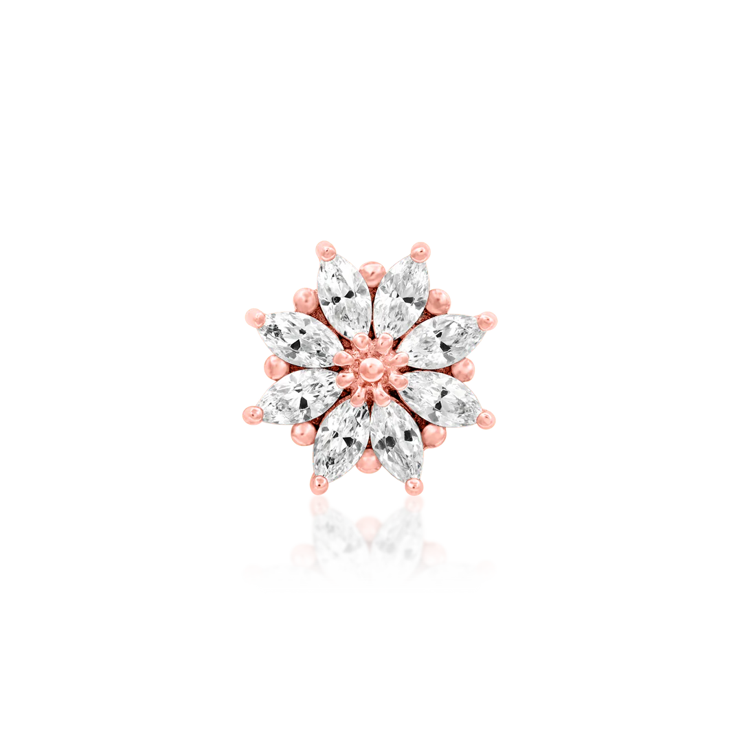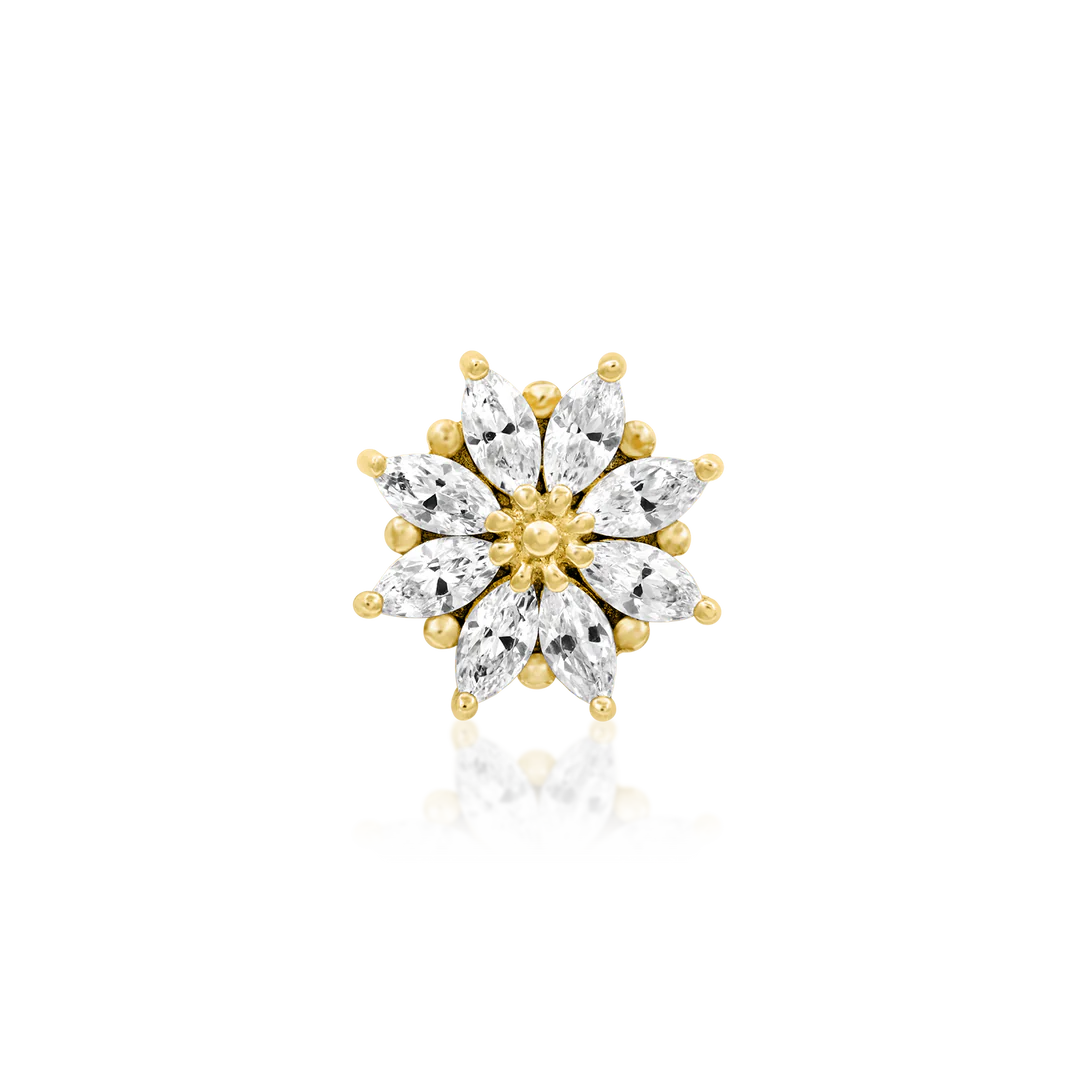 Nothing scary about Annabelle! An incredible 8 marquise CZ stones (3x1.5mm) in a beautiful wheel of sparkle with a flourish of delicate gold beading.