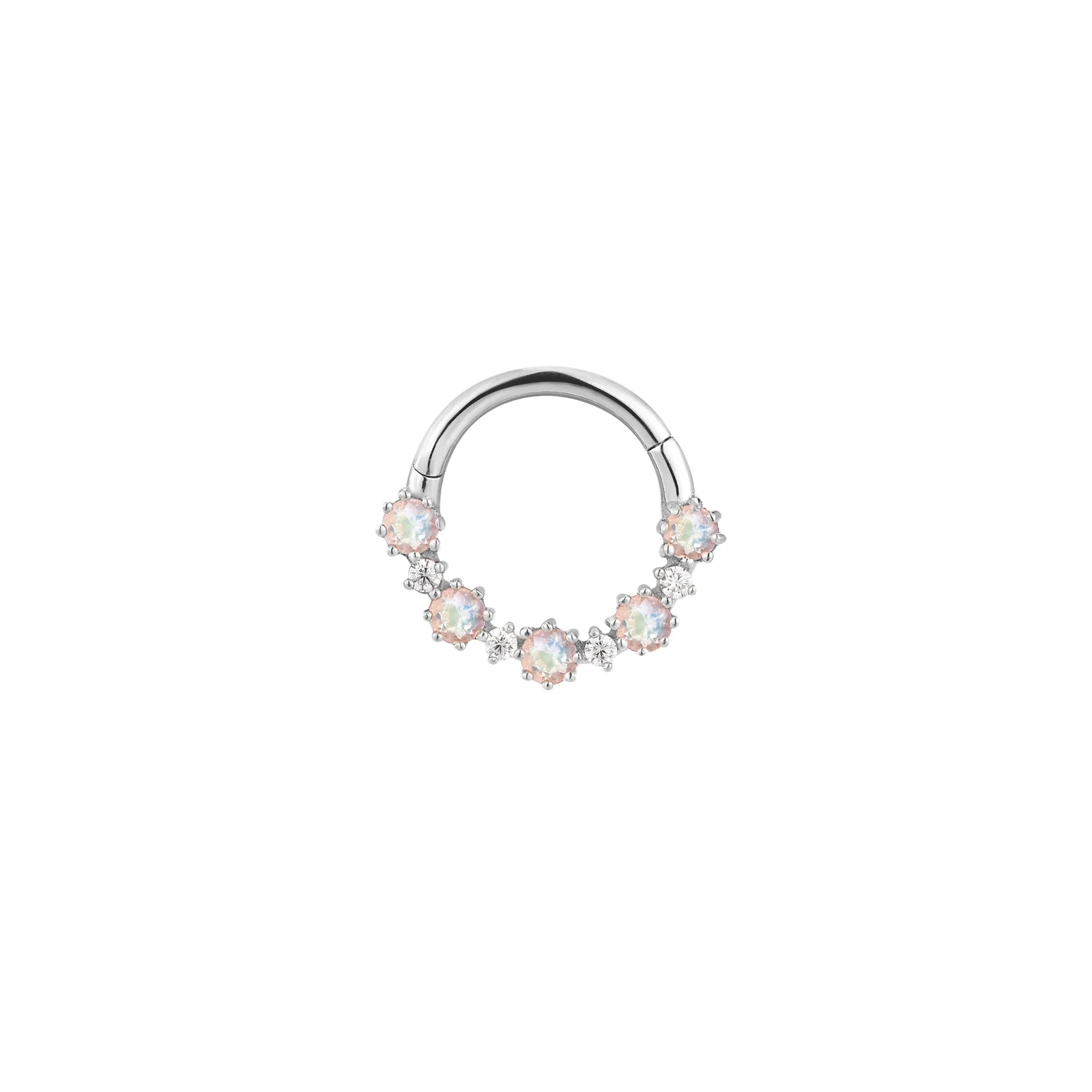 - Gemstones: 5/16: (4) 2mm CZs and (5) 1.2mm Rainbow Moonstone, 3/8: (6) 2mm CZs and (5) 1.2mm Rainbow Moonstone