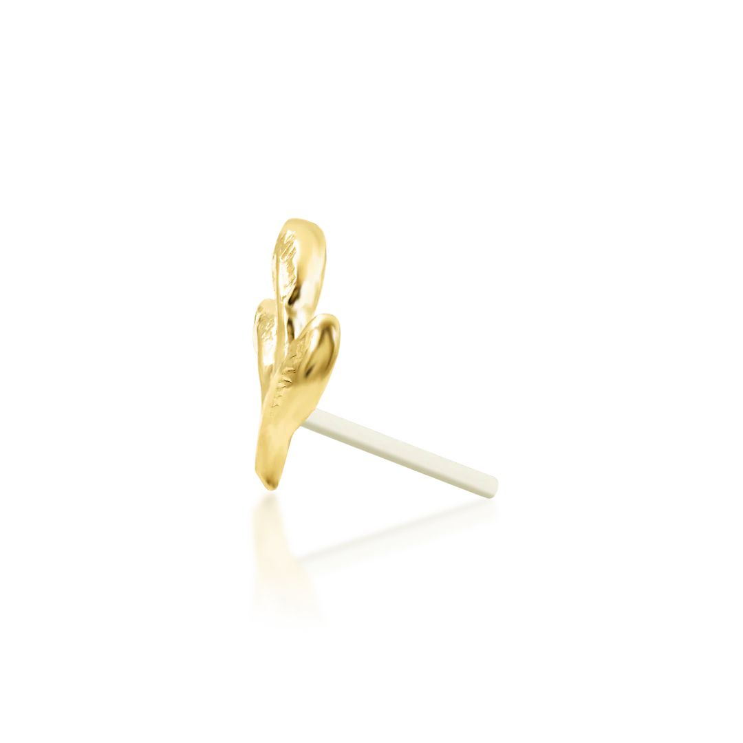 A touch of Mother Nature. A solid gold branch sprig with three textured leave details.