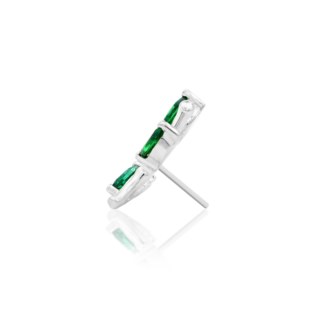 Strong, beautiful, bamboo! This solid 3D sculpted gold bamboo shoot, completed with a trio of 1.5x3mm green marquise CZ.