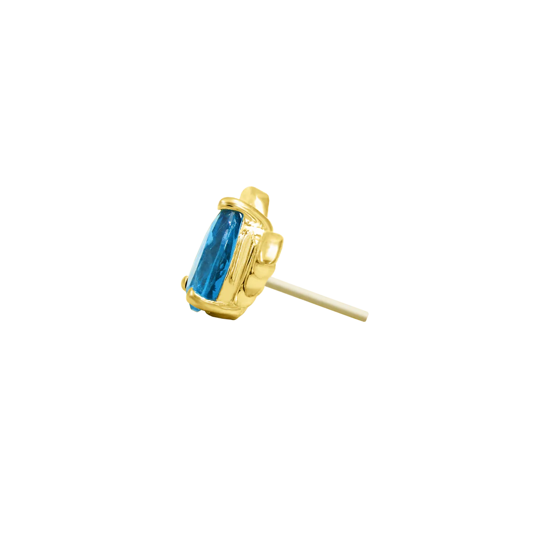 A stunning, 3x5mm Gothic inspired Light Sapphire Blue CZ pear, mounted on a pair of solid 14k gold bat wings.