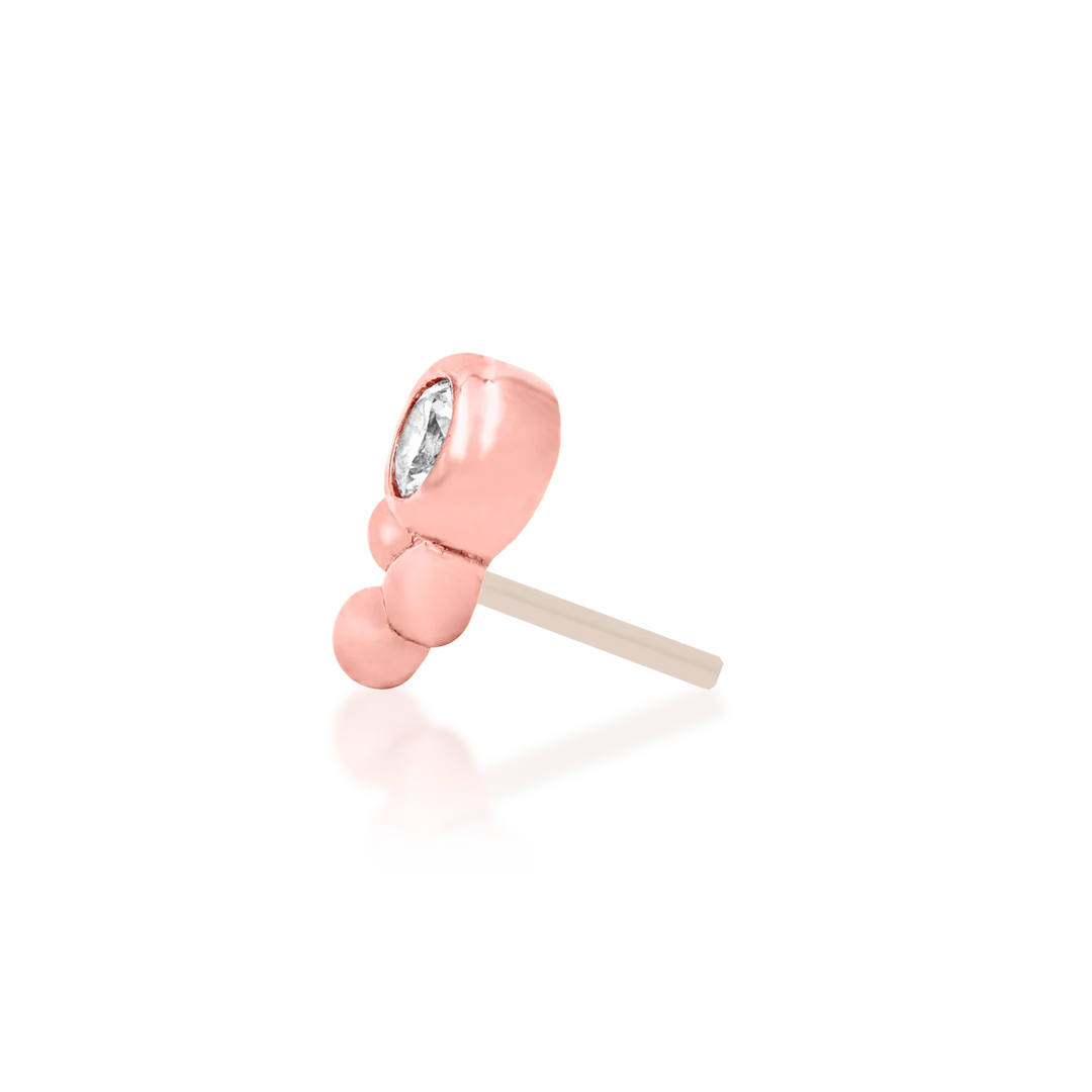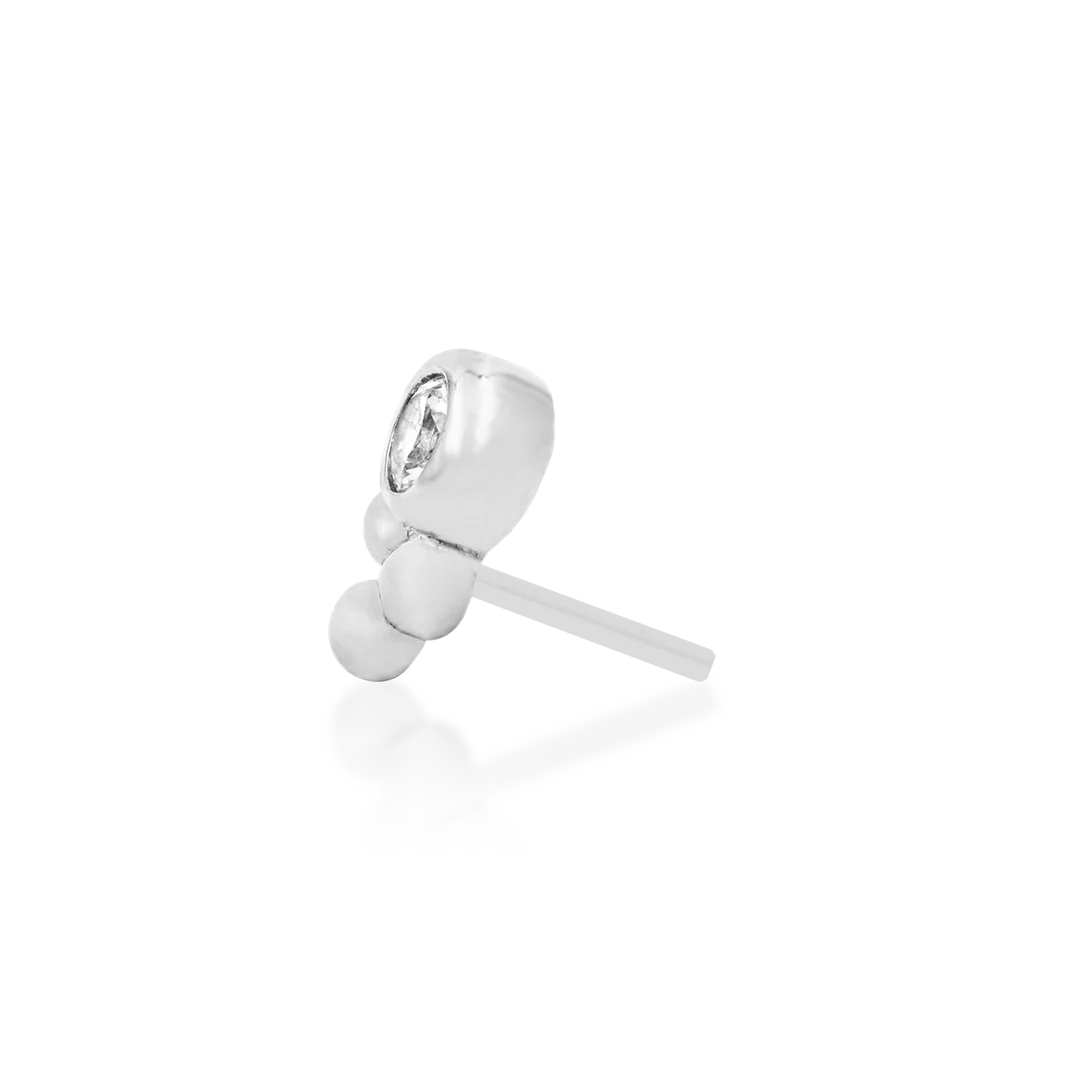 The Bezel-Set CZ Tri-Bead piece features a 2mm cubic zirconia stone gem in a bezel-set with a tri-bead accent.