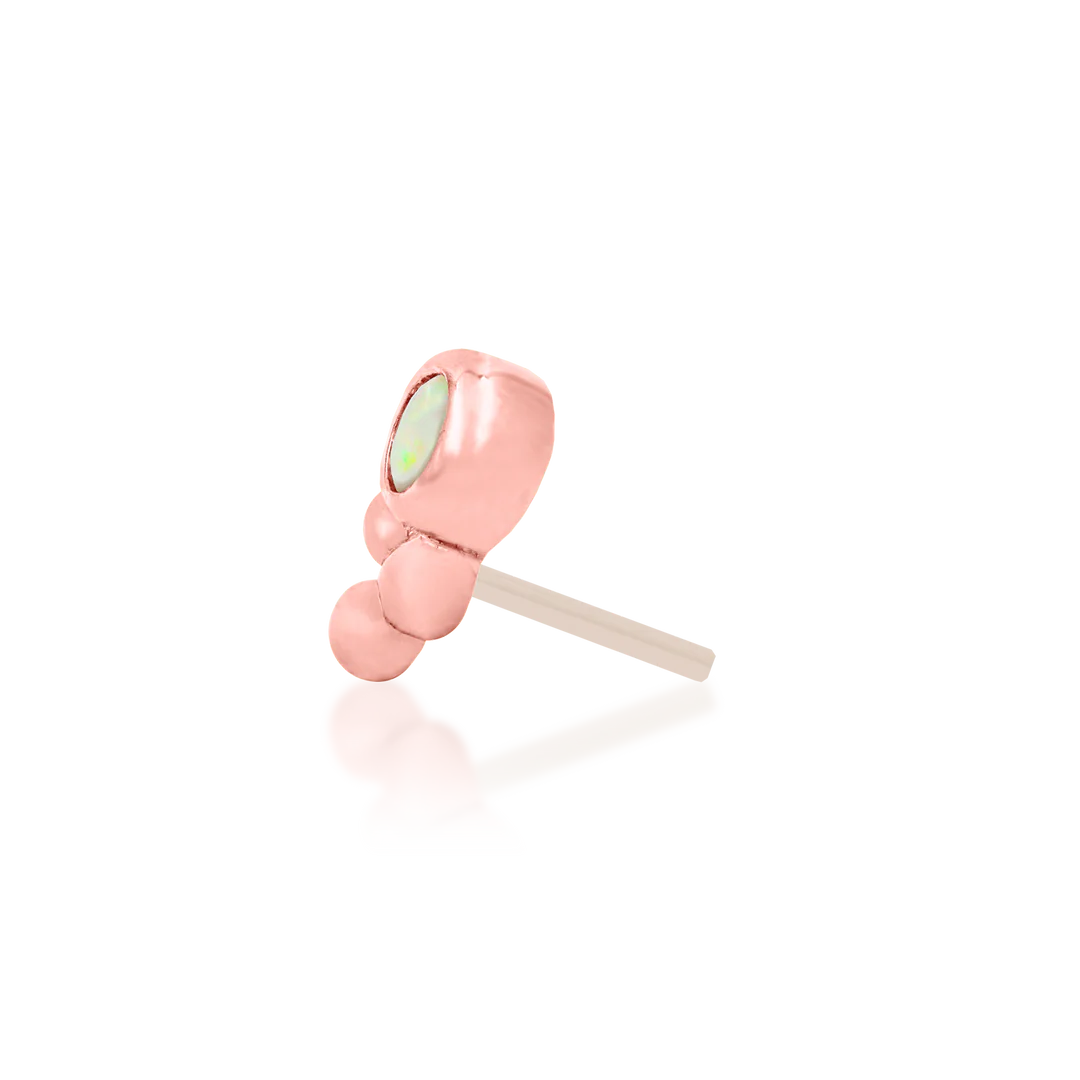 The Bezel-Set Tri-Bead with Opal piece features a 2mm synthetic opal stone gem in a bezel-set with a tri-bead accent.
