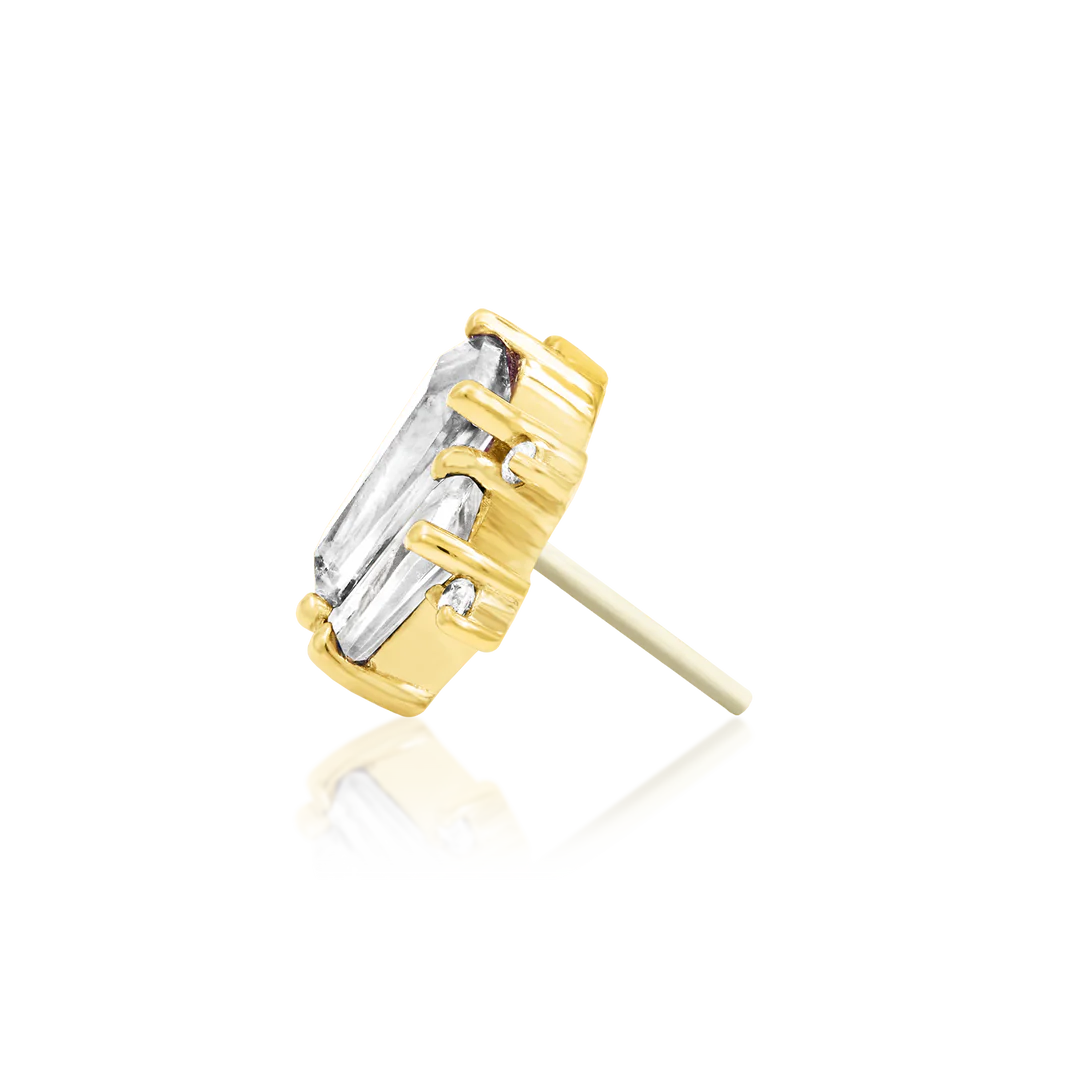 Introducing, Brook! A trio of baguette stones (1 - 5x3mm, 2 - 4x2mm pear shaped CZ) with 4 - 0.8mm Swarovski stones in between.