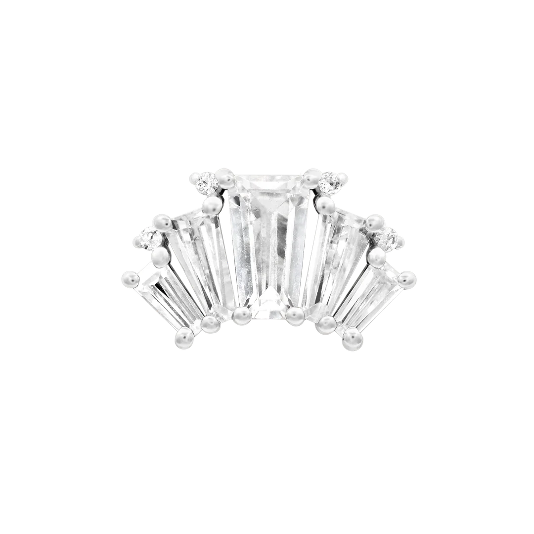 The baguette is slightly curved to fit in all the best places, and has 9 CZs. Pairs well with any APP approved threadless post.