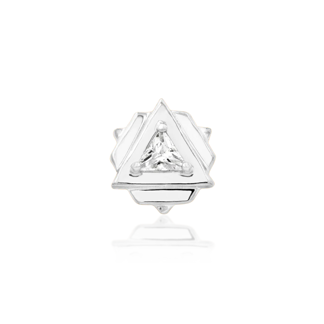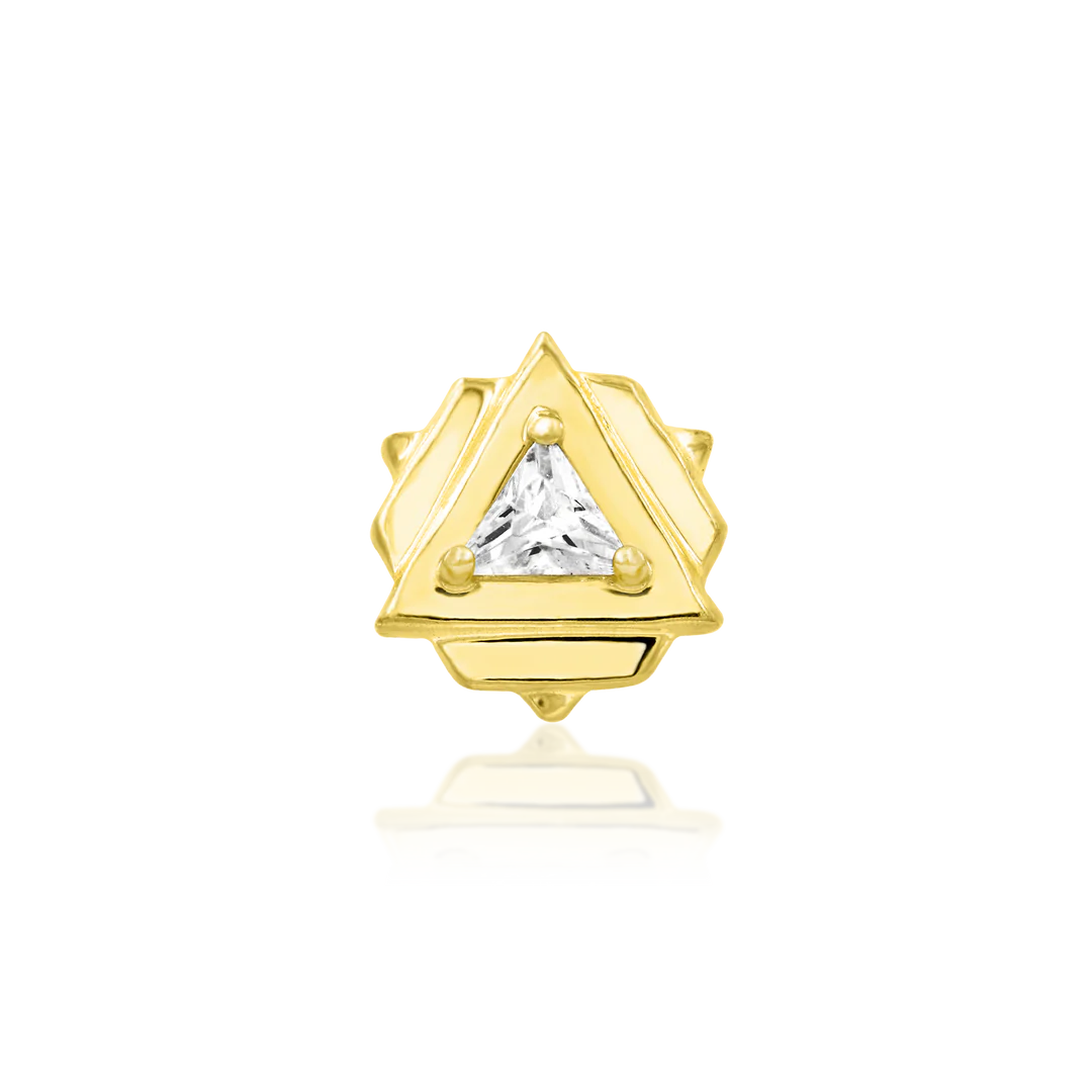 Excellence in geometry! Carrie pairs a stunning 2mm triangleCubic Zirconia with a solid gold geometric framing.