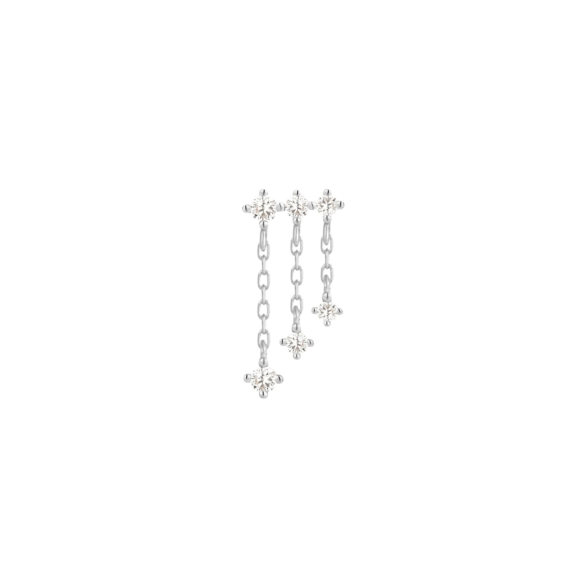 Swimming in sparkles, Cascade mimics a breathtaking waterfall, free falling into a plunging pool. Three CZs line the edge and support three CZs delicately dangling from below in a descending order. Add Cascade to your helix, flat, or rook for an eye-catching centerpiece.