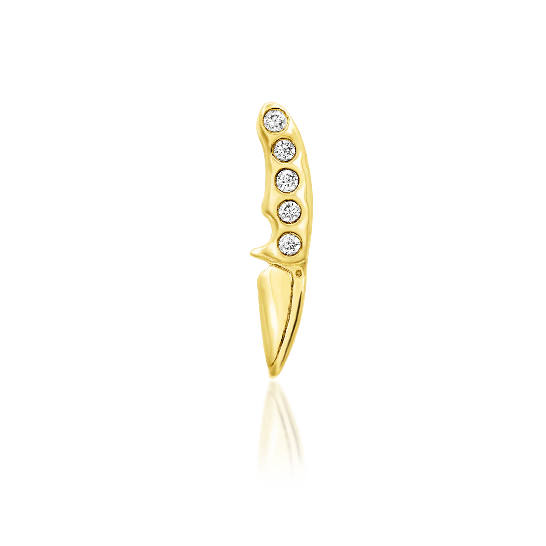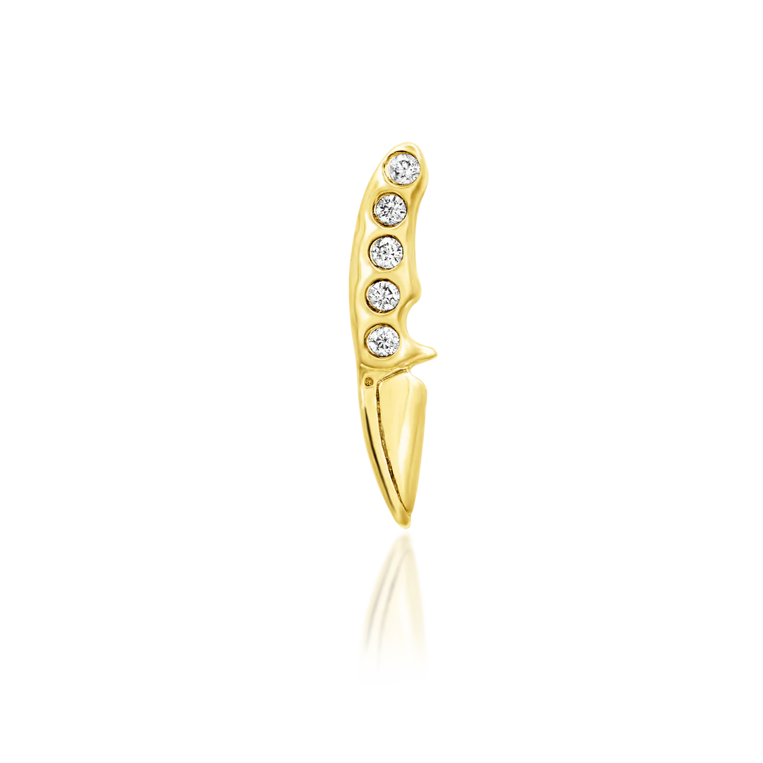 Date night is a girl's best friend, an edgy 14k Gold pocket knife design, fully bedazzled with 0.9mm x5 Czs.