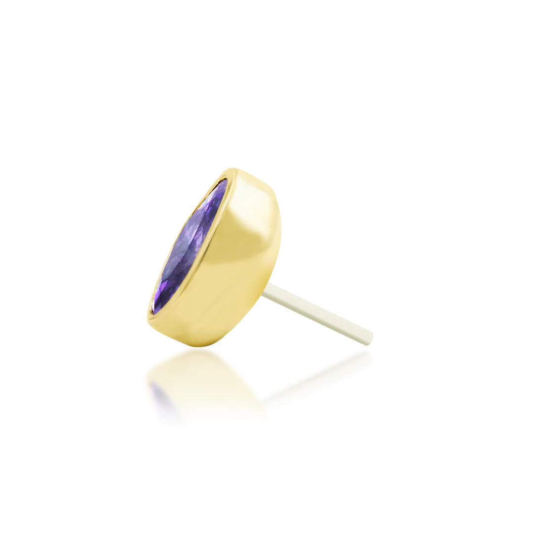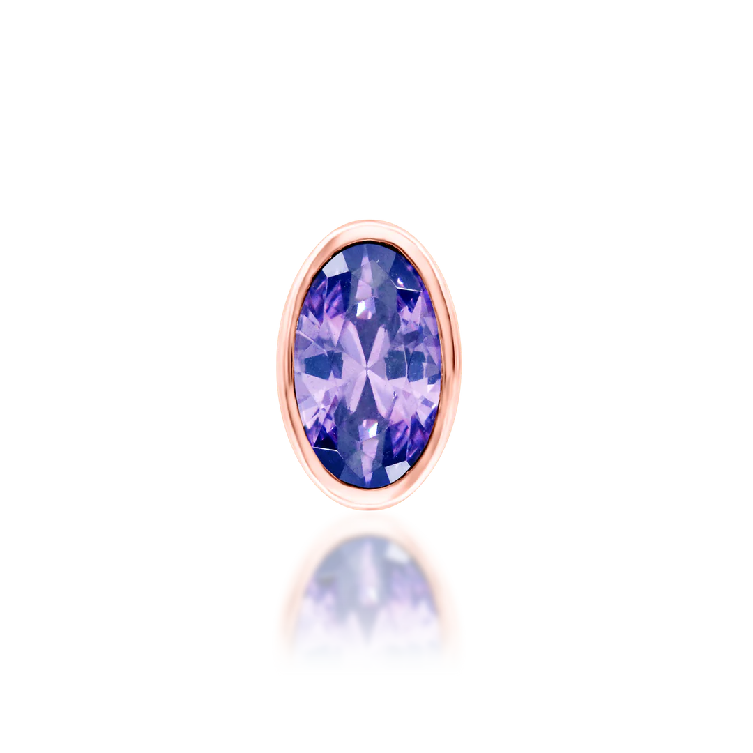 A stunning oval Synthetic Amethyst Cubic Zirconia bezel in a highly polished, super smooth 14k bezel.