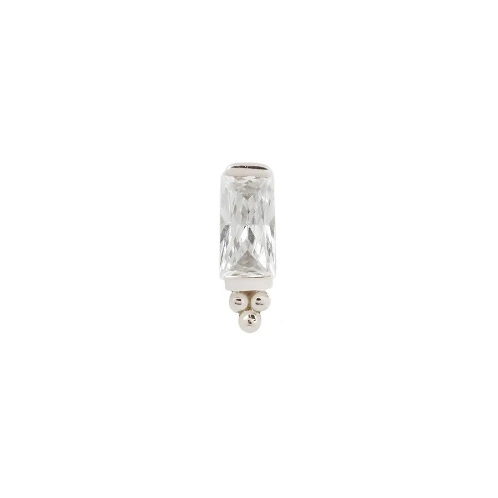 This chic design features a baguette-cut CZ, adorned with handmade beading detail at the base. A charming piece that will stand the test of time!