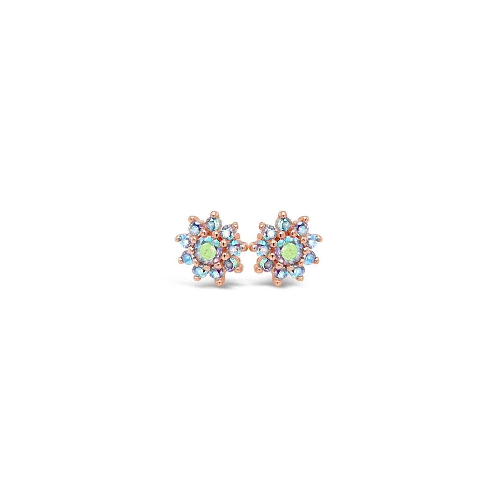 The Eloise flower packs a lot of shine + color in a small package! Low profile set Mercury Mist Topaz makes this design perfect to wear in any piercing!