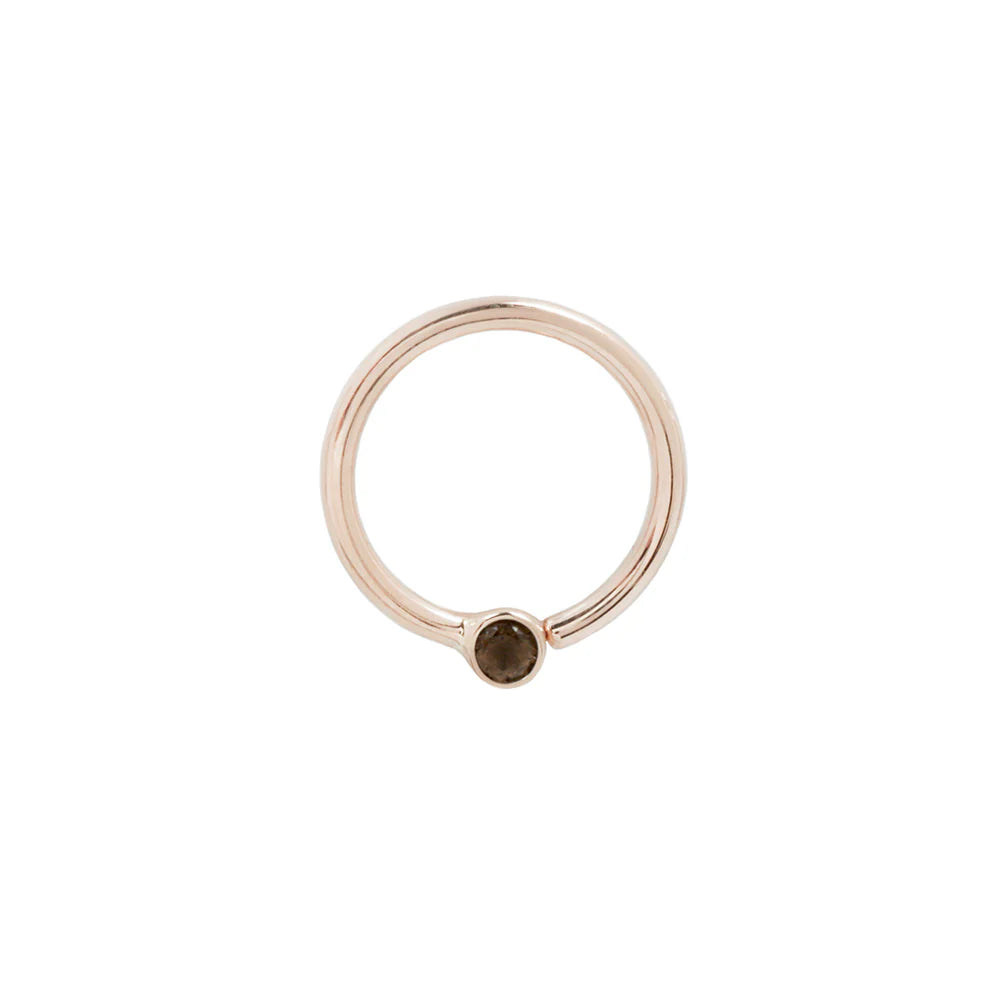 Embark on an ethereal journey in the solid 14k gold fixed bead ring, adorned with a 2mm bezel-set Smoky Quartz gemstone. This piece is a go-to for initial piercings like the septum, daith, or helix. Snag one in just the right size to complement your unique anatomy!