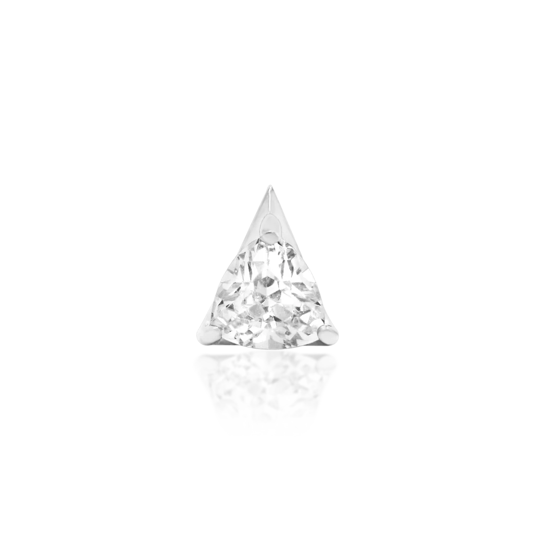 A geometric twist to this breathtaking 3mm triangle CZ end paired with a gorgeous high polish asymmetrical 14k gold frame.