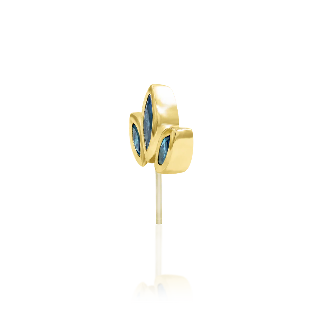Part of Junipurr's side set collection. A classic trio of light sapphire CZs (4x2mm, 3x1.5mm x2) side set on a gorgeous high polish 14k gold bezel.