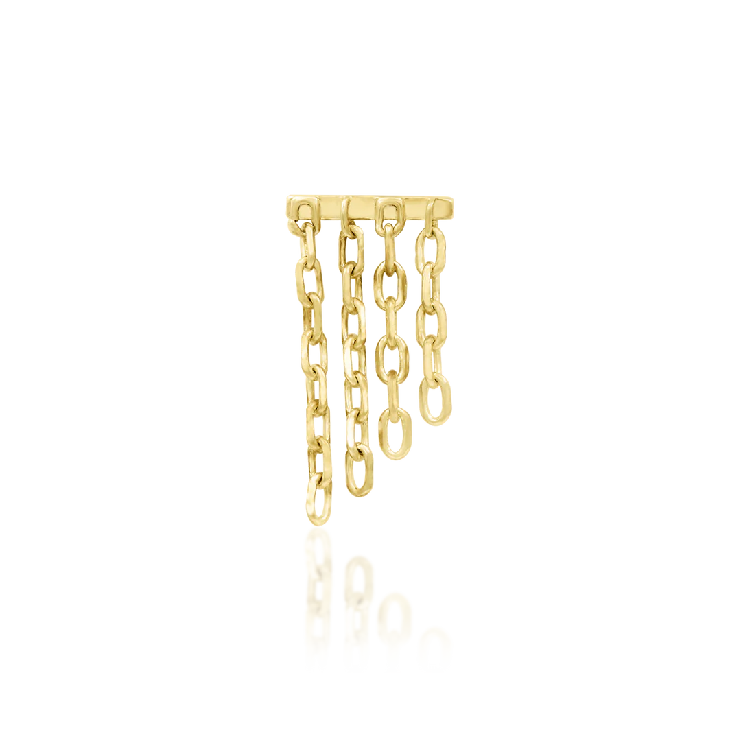 Dripping chains for days, Imogen is picture perfect simplicity. A waterfall of fine gold chain mounted on an invisible setting for a seamless fit.