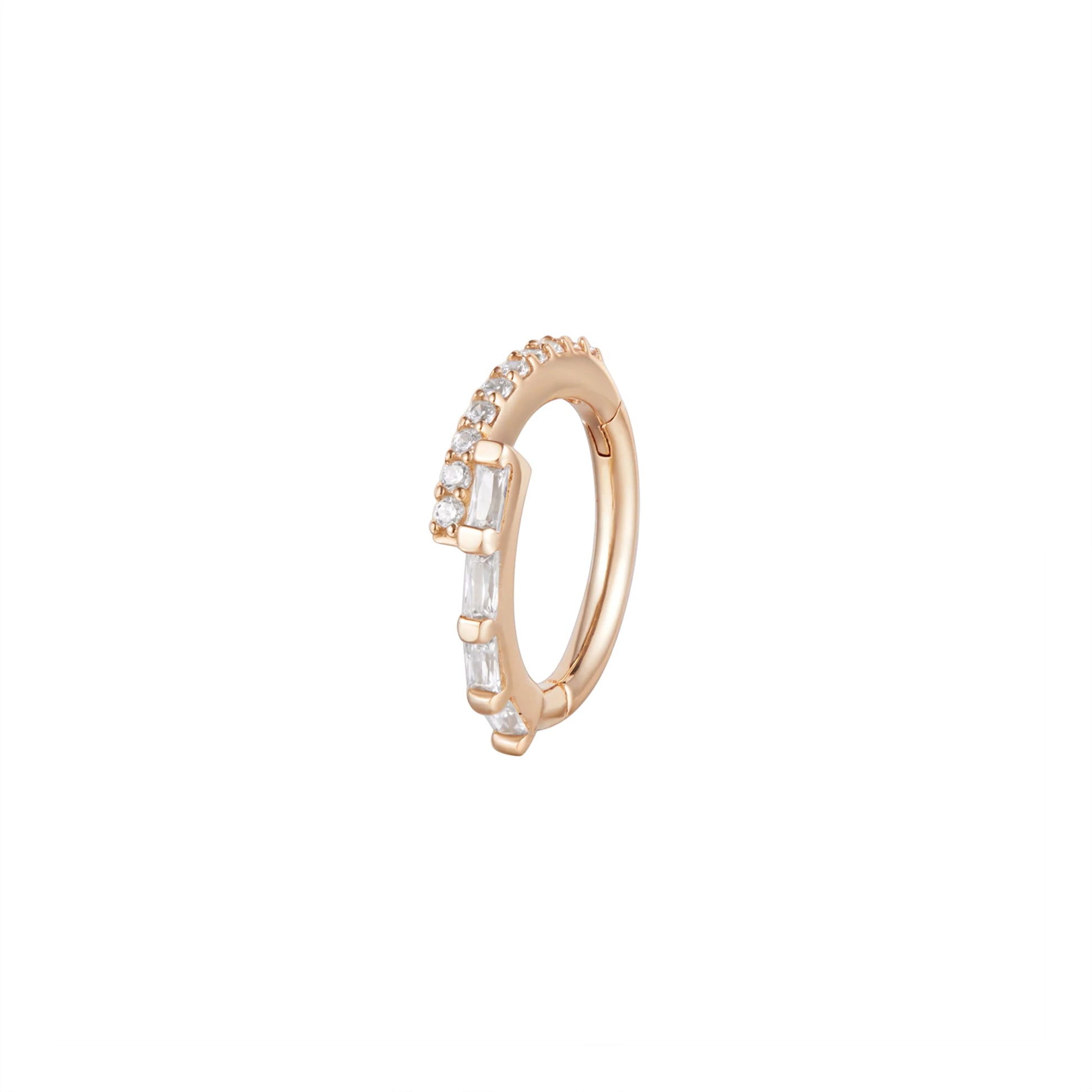 Dive into the cutting-edge coolness of the latest creation – the In Reverse clicker. Fashioned from solid 14kt gold and decked out in CZs, this piece grabs light with its offbeat asymmetry, serving up a seriously unique and jaw-dropping vibe.