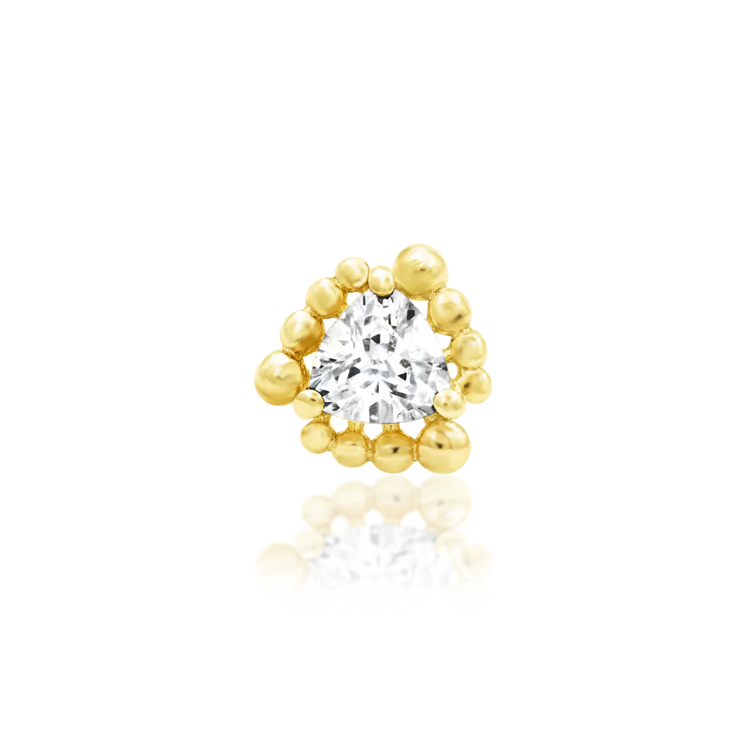 Named after her inspiration, Isabella is a breathtaking trillion cut 3mm CZ centre, surrounded by a trio of delicate gold beads.