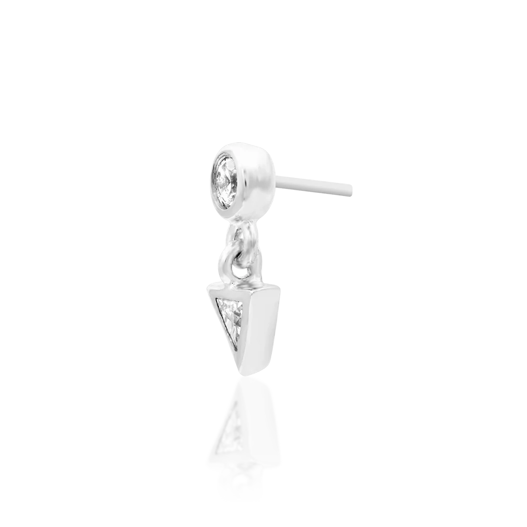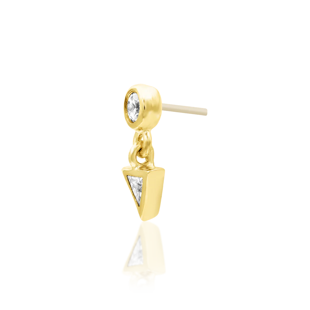 Say hello to Ivy! A brilliantly faceted, 14k bezel set 2mm CZ with a matching 2mm triangle CZ dangle.