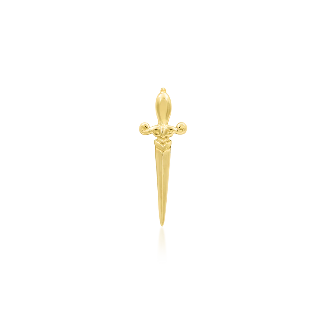 Solid gold with an edge! Looking sharp is an old school tattoo style dagger with a sleek, high polished finish.