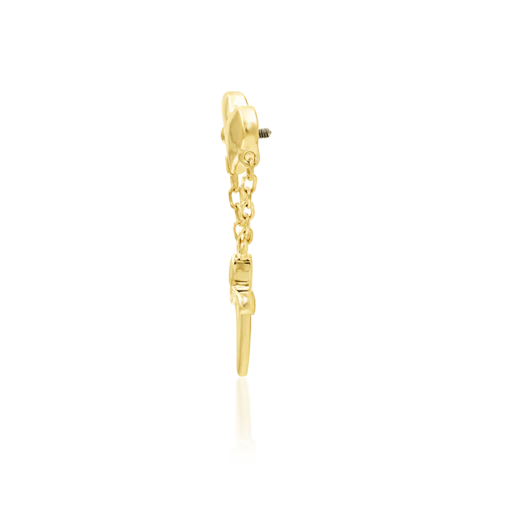 Love story is a gorgeous, high-polished 14k heart end with a matching 14k dagger dangle to keep things very interesting.