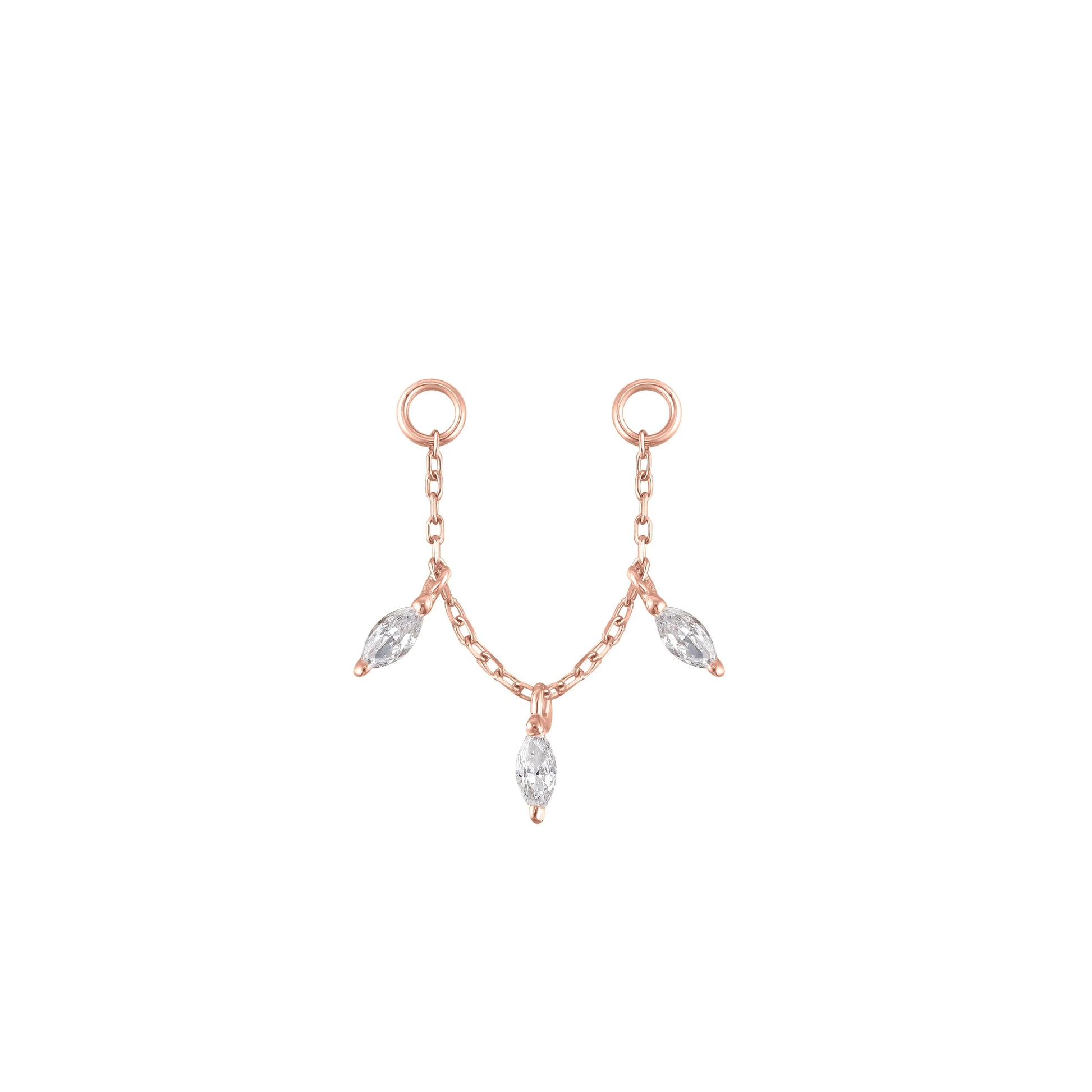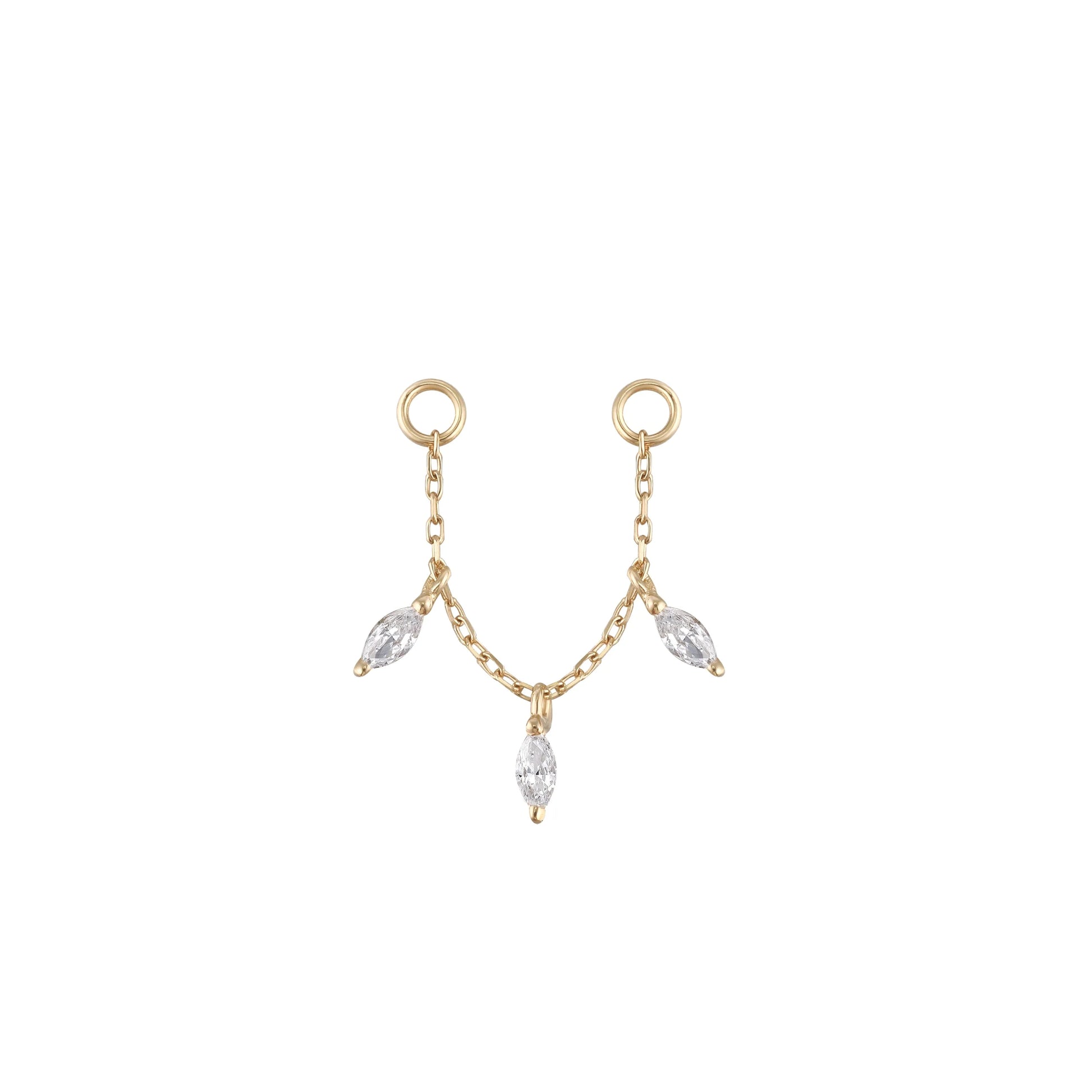 Indulge in the allure of Lyric, a captivating chain featuring gold-adorned leaf-shaped CZs for a touch of glamour. This haute chain is designed to slay in various piercings, perfectly complementing our seam rings or threadless ends for added movement.