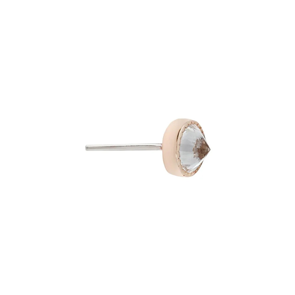 A unique take on a staple design, the reverse set Swarovski CZ is wrapped in solid gold with fine milgrain detailing. Buddha Jewelry is excited to offer this gem-setting technique that is turning heads and stones upside down to give you another perspective on fine jewelry.