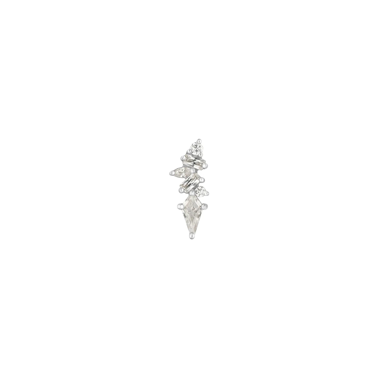 CZ gemstones collide in a cute cluster for this breathtaking new piece. Mixt is a wonderful addition to any curation needing an elongated piece. Style Mixt in the forward helix, high lobe, or flat piercing for a sparkling sleek look!