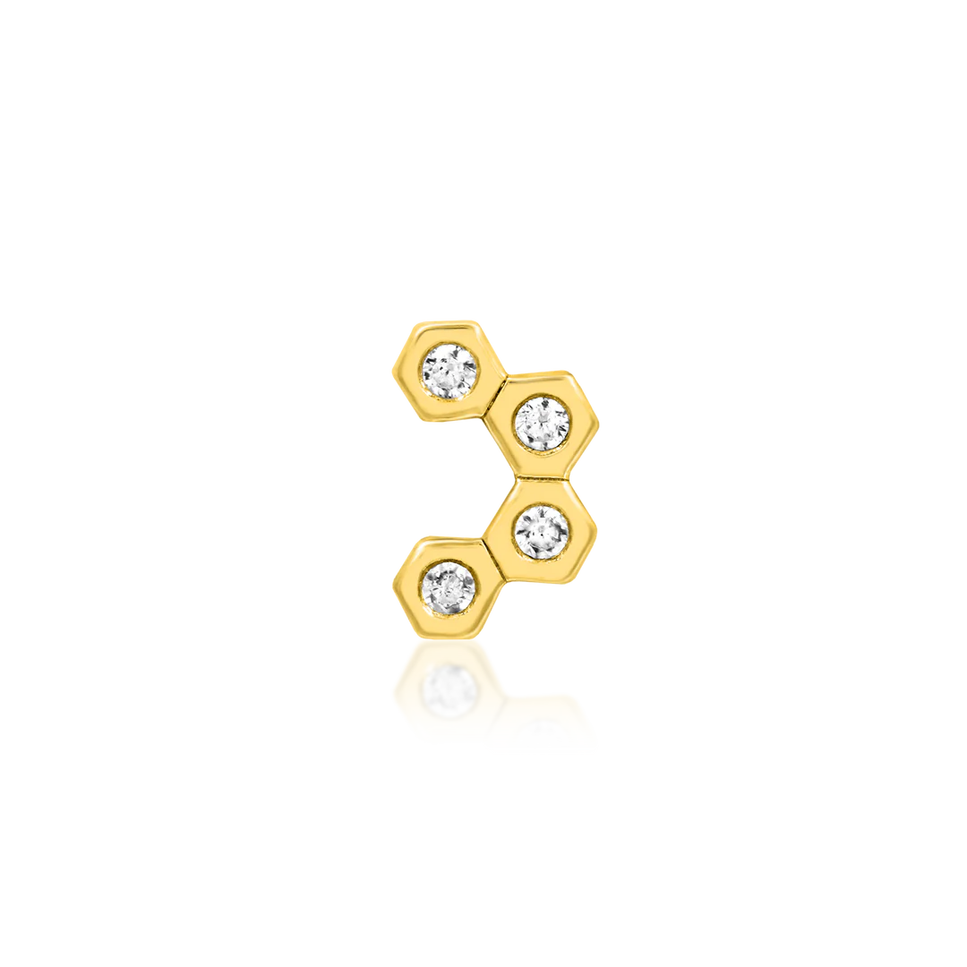 Northern nectar is a super sweet and high polished honeycomb arc with 4 round CZ gems. Pairs well with any APP approved post.