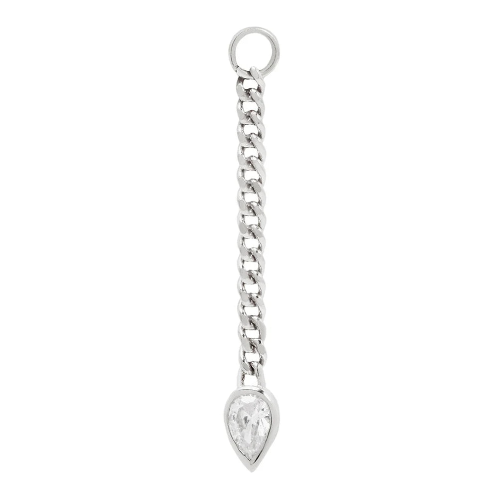 Want to dress up your everyday look? Add some length and sparkle to your jewelry with Painkiller! This chain charm features a pear-cut CZ set in 14k gold. Pair with your favorite seam ring or threadless end.