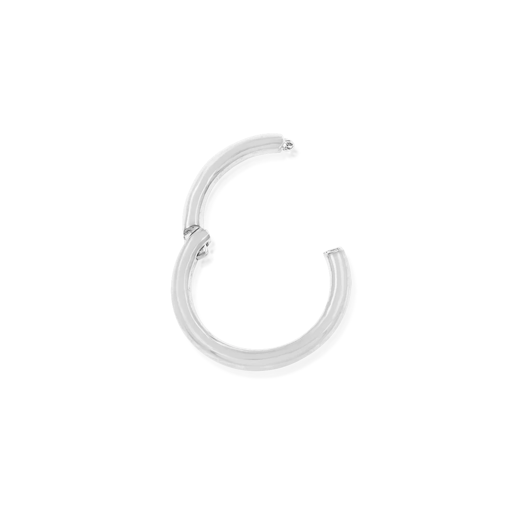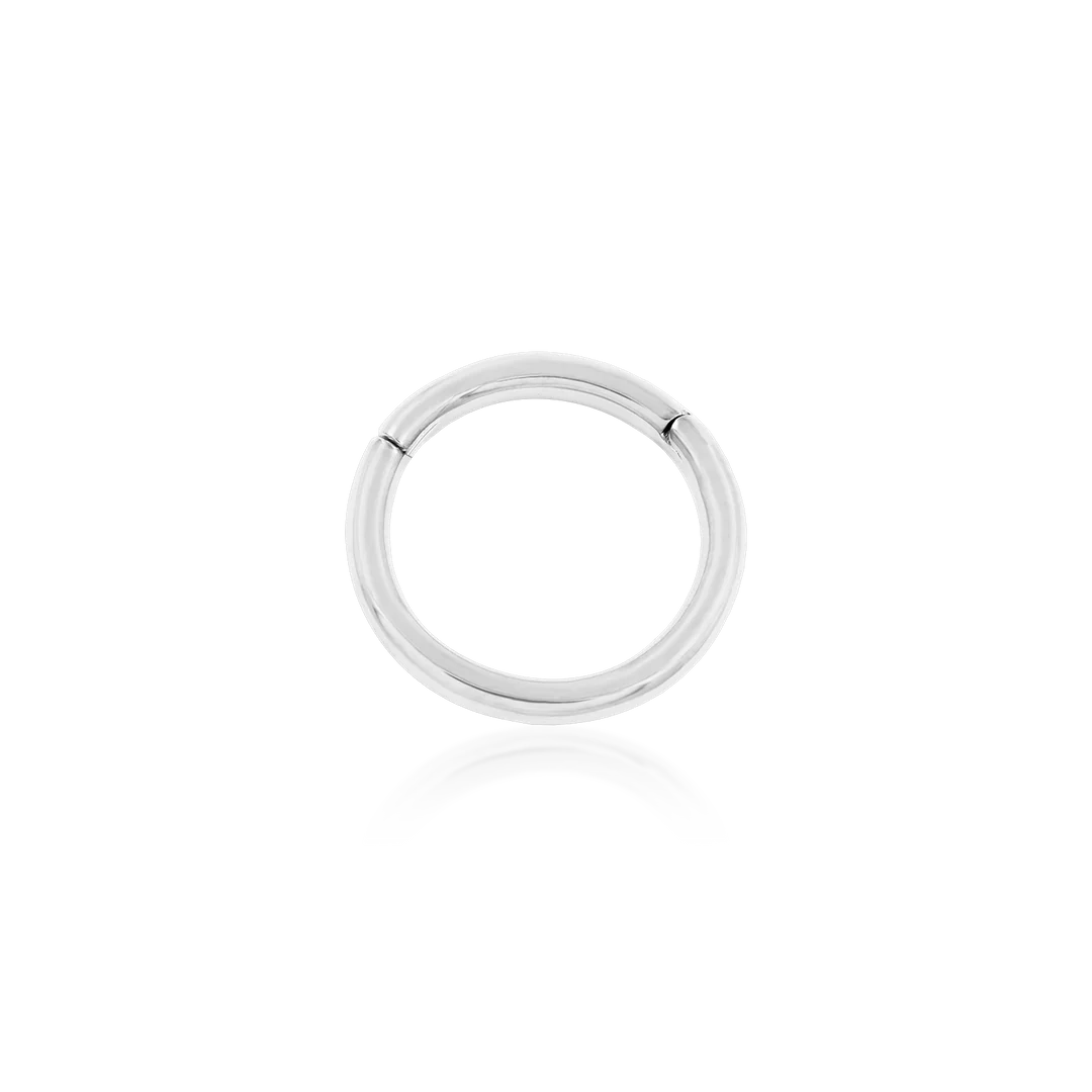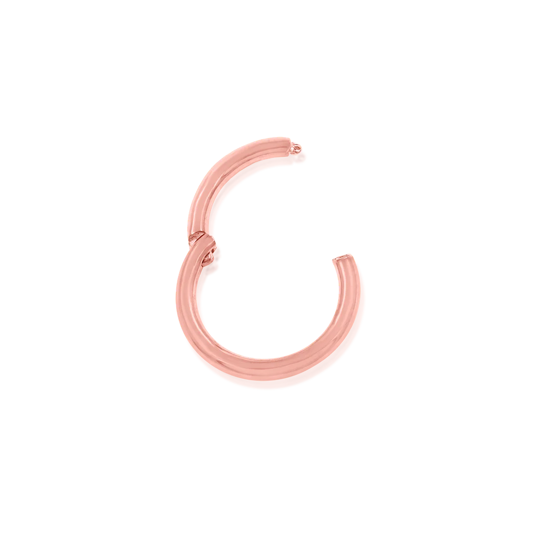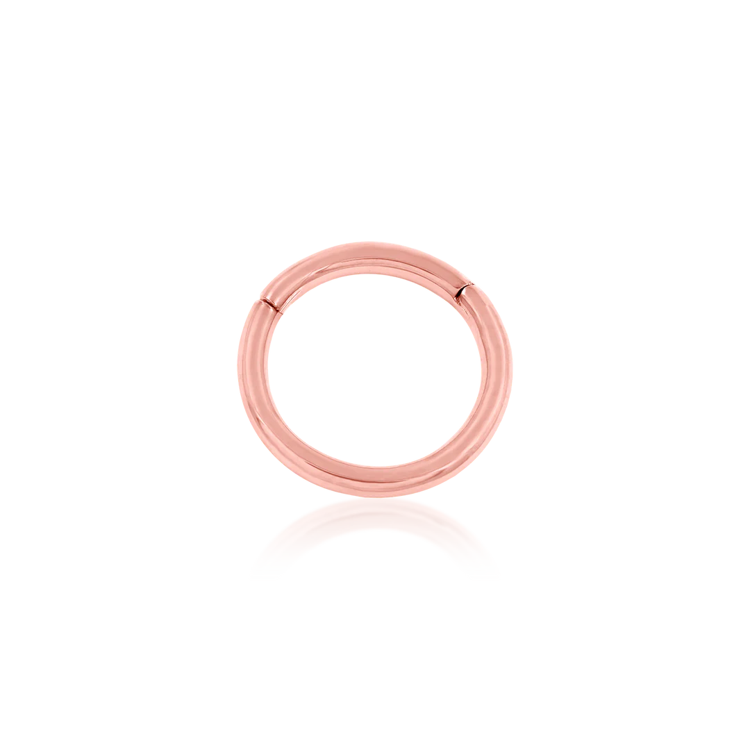 The Gold Clicker piece is a classic ring. The seam of the hinge is conveniently placed to not interfere with healing piercings.