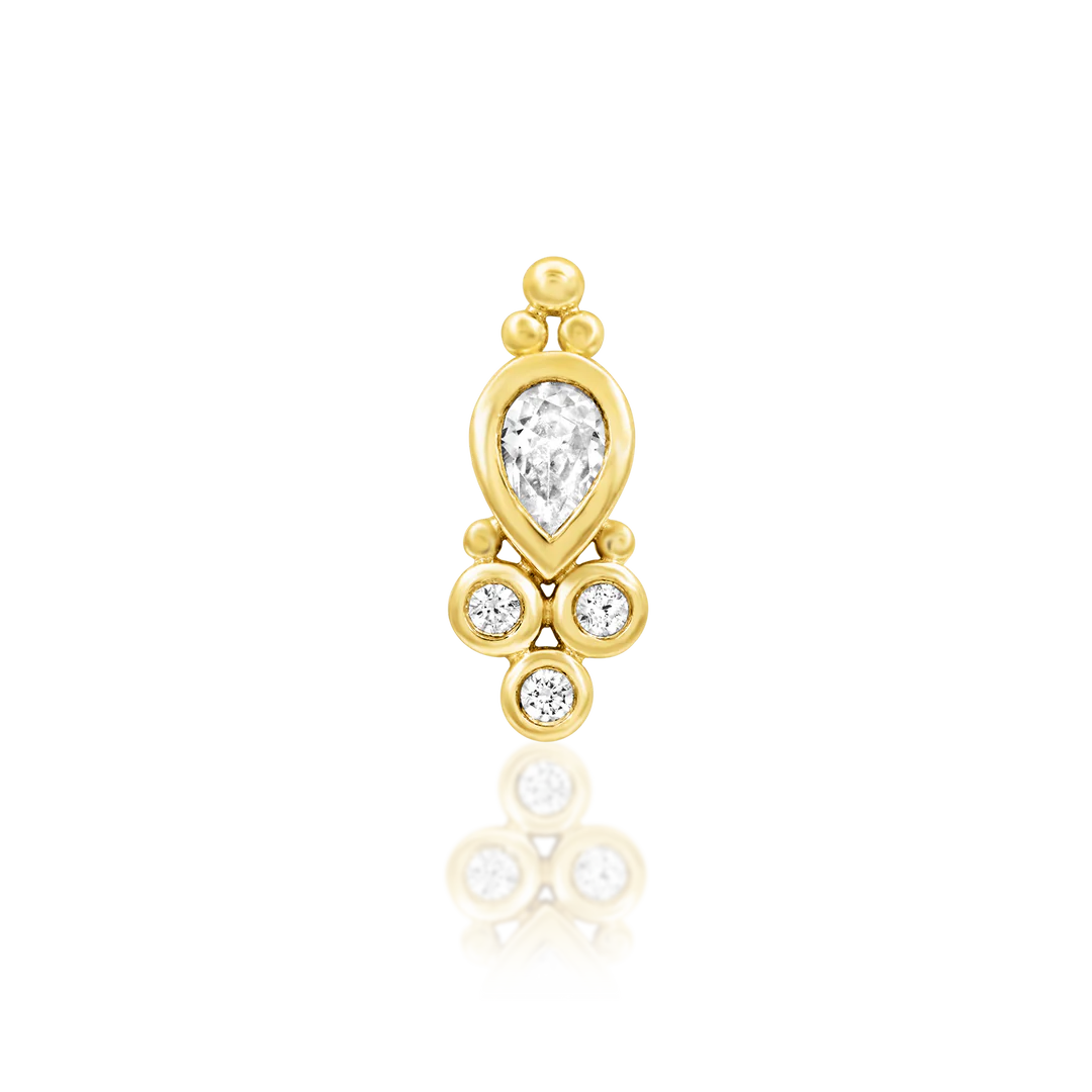 Beautiful Ramona is a must have for any collection. A stunning blend of pear and round CZs and a splash of delicate gold beading.
