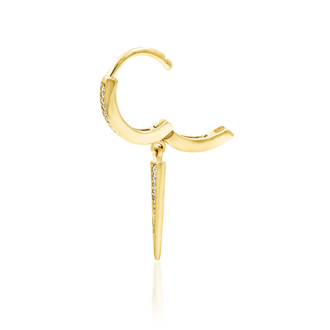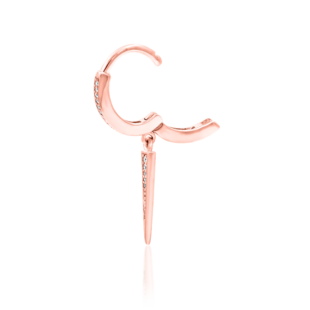 Ria is a classic chunky clicker with a 12mm (1.8mm thick) spike charm, dripping with 1mm and 0.8mm czs. The total length from the top of the ring to the bottom of the spike charm is 29mm.