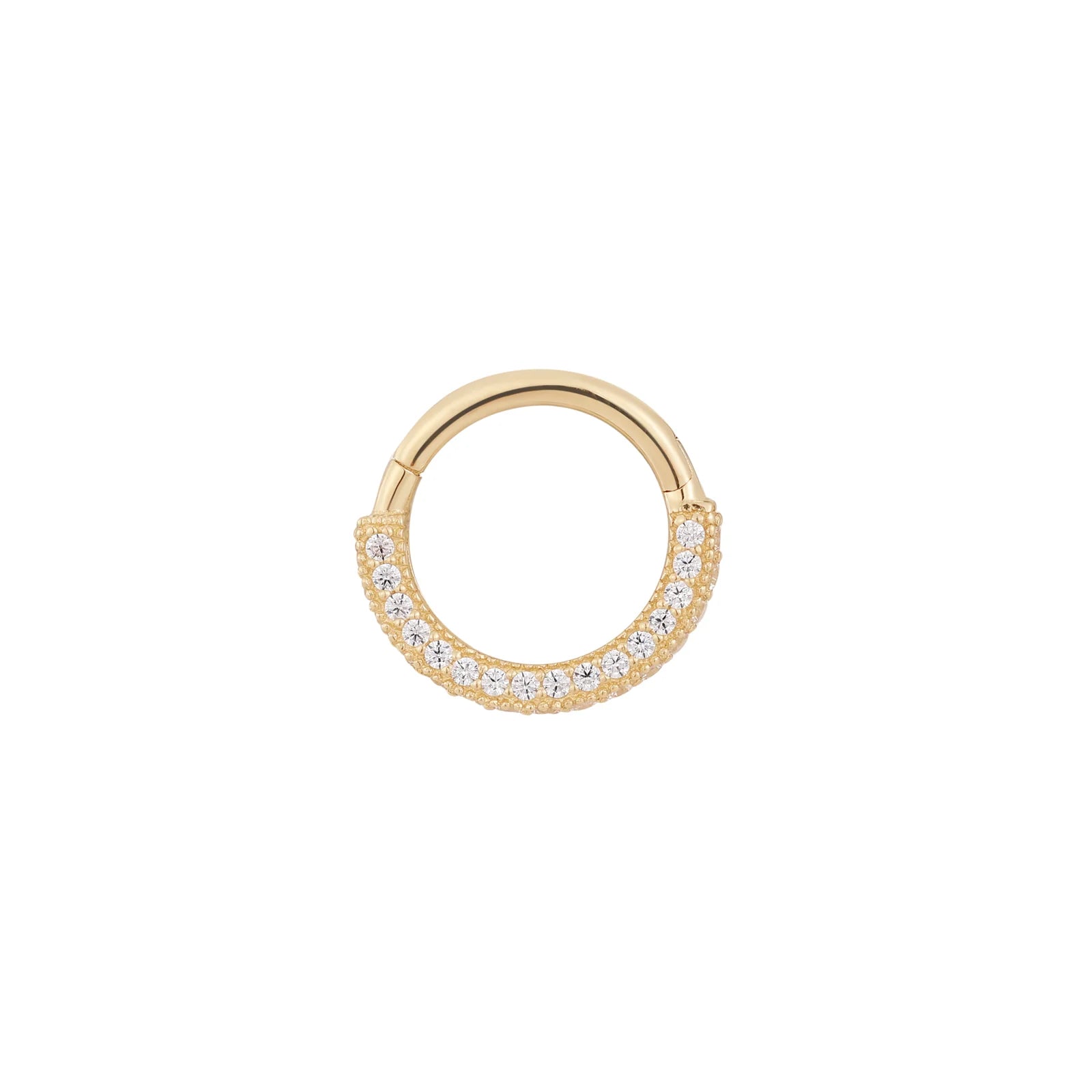 Prepare to swoon over Buddha Jewelry's latest sensation, the Showcase clicker – unlike anything you've seen before! Elevating the game with a fresh design concept, this piece is crafted in solid 14k gold, featuring three sides adorned with dazzling CZs that redefine the clicker experience.
