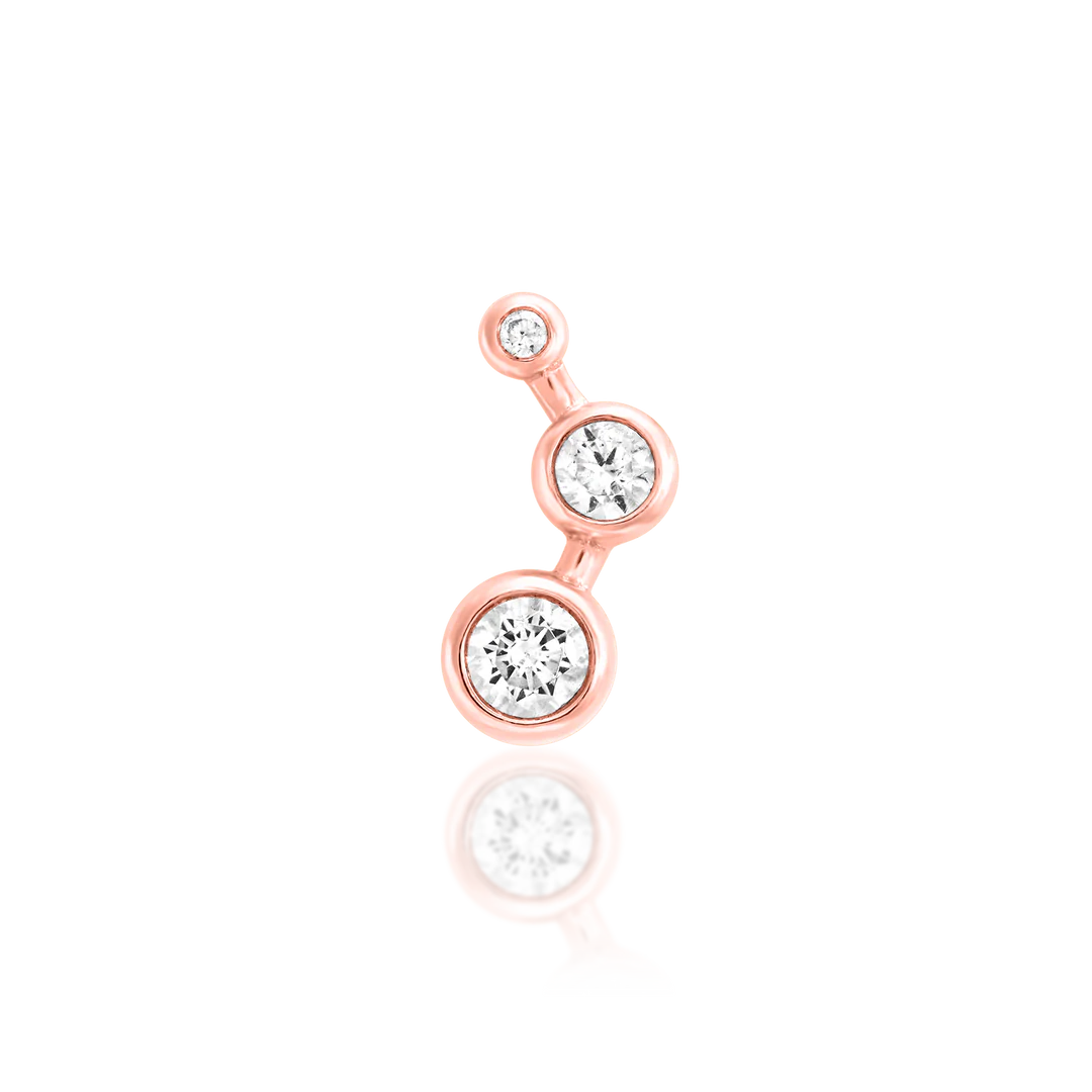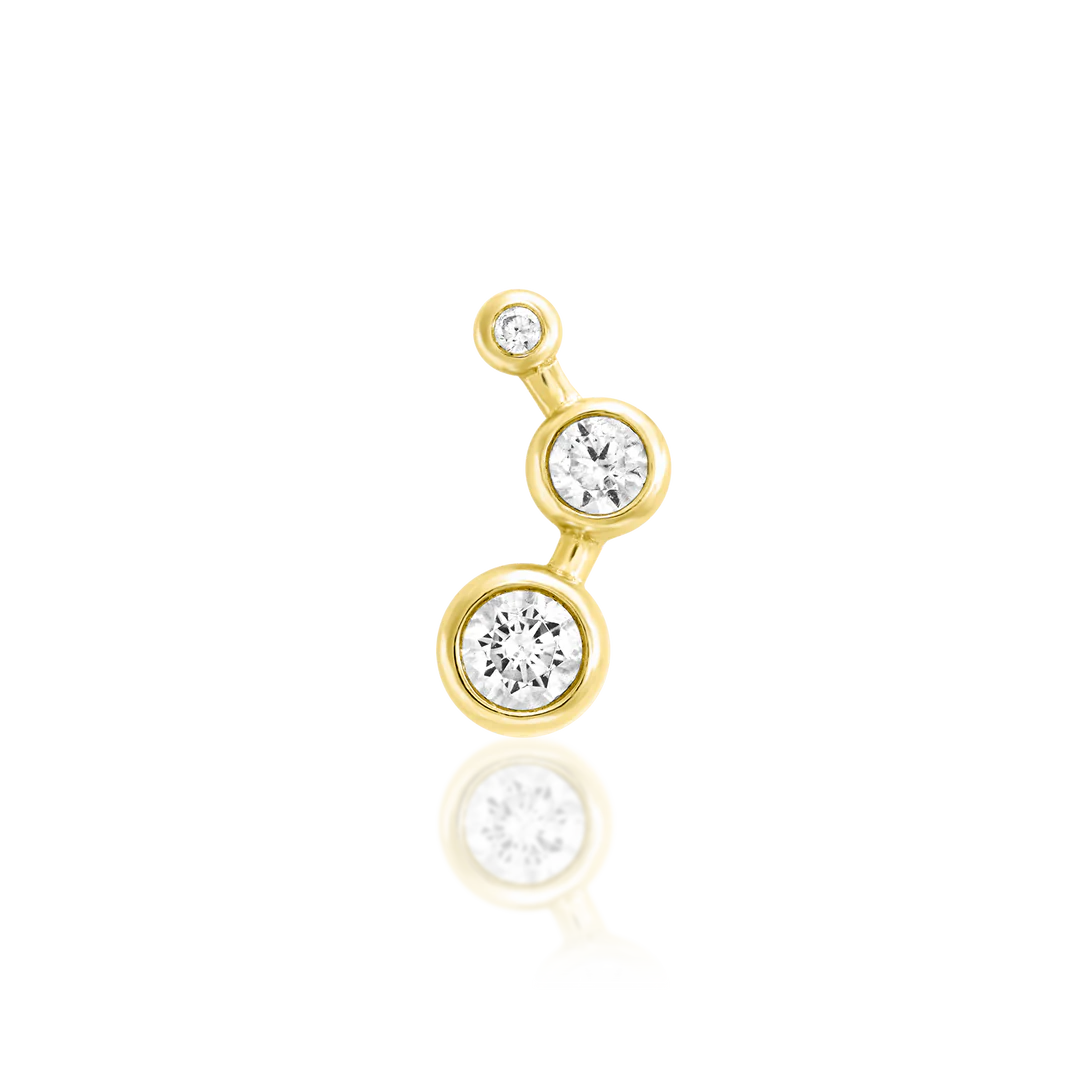 Starlight is a beautiful mini constellation of 14k gold, bezel set CZs, 2.5mm , 2mm and 1mm centre pin, threadless design available in 14k Yellow, Rose and White gold.