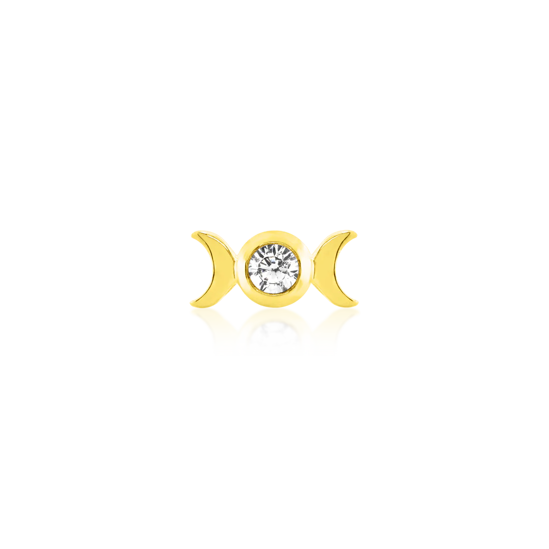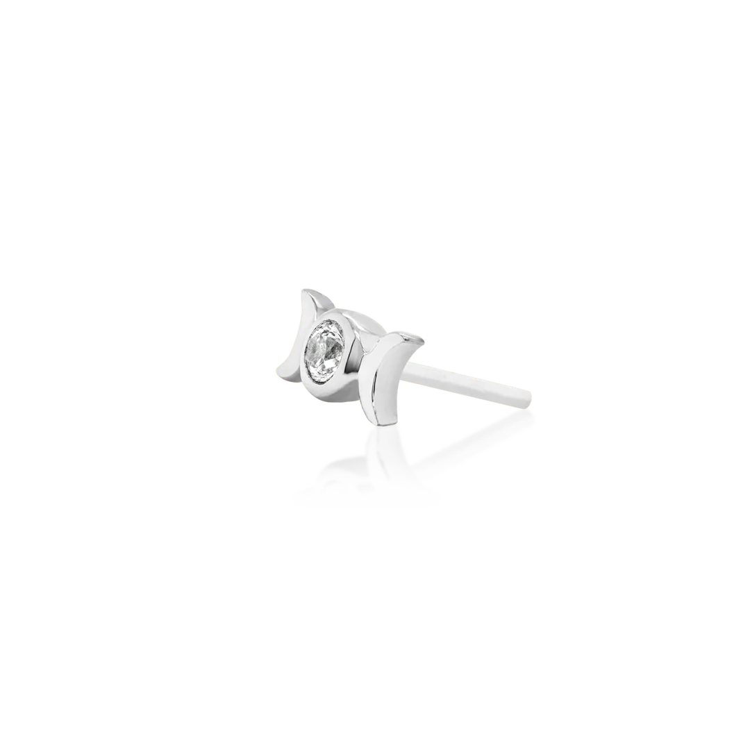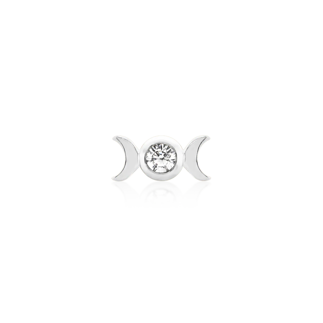 Wear the hottest in Silvan style with Junipurr's Tauriel Threadless End. Tauriel has one stunning bezel set CZ nestled between two moon silhouettes to make a perfectly symmetrical silhouette.