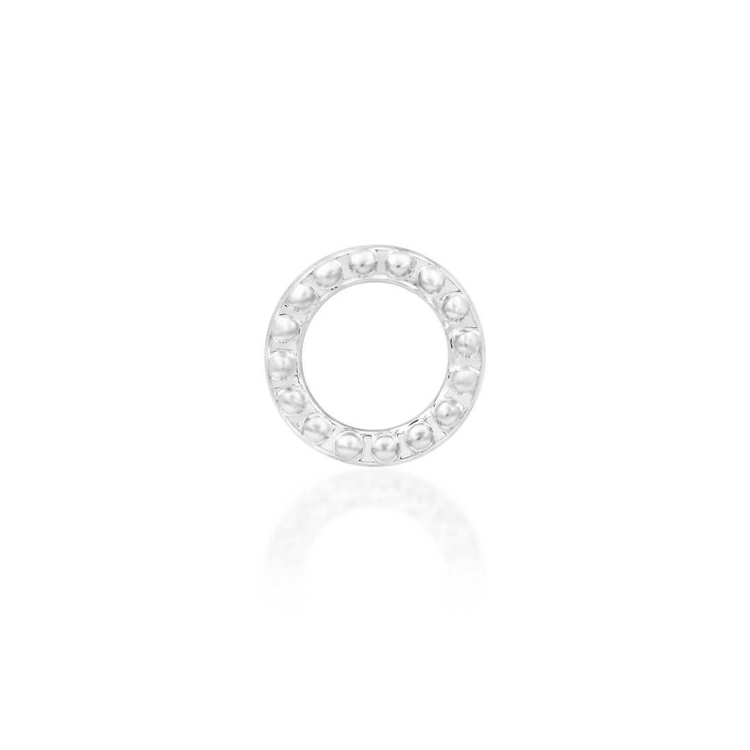 Embrace negative space with Tawney. A simple, modern, textured circle end with tiny beaded detailing in 14k gold.