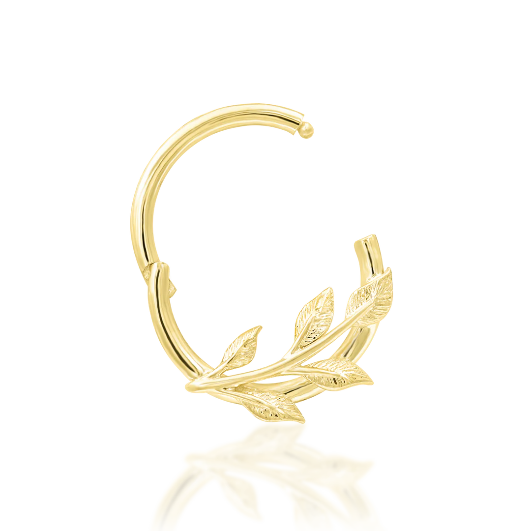 A solid gold classic clicker ring, delightfully finished with a solid gold branch.